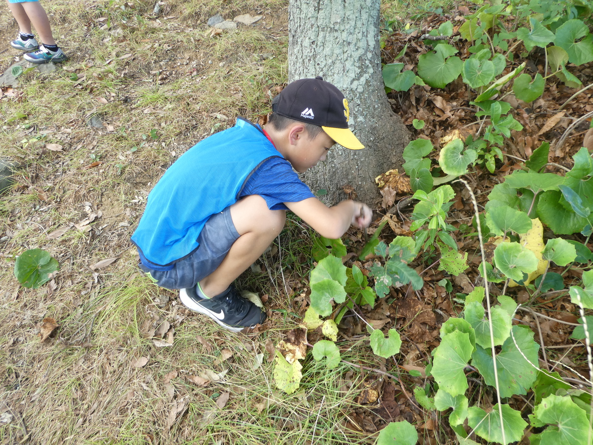 午前中は森の中に入ってカブトムシやクワガタを探しました、虫たちが好きな木を教えてもらって