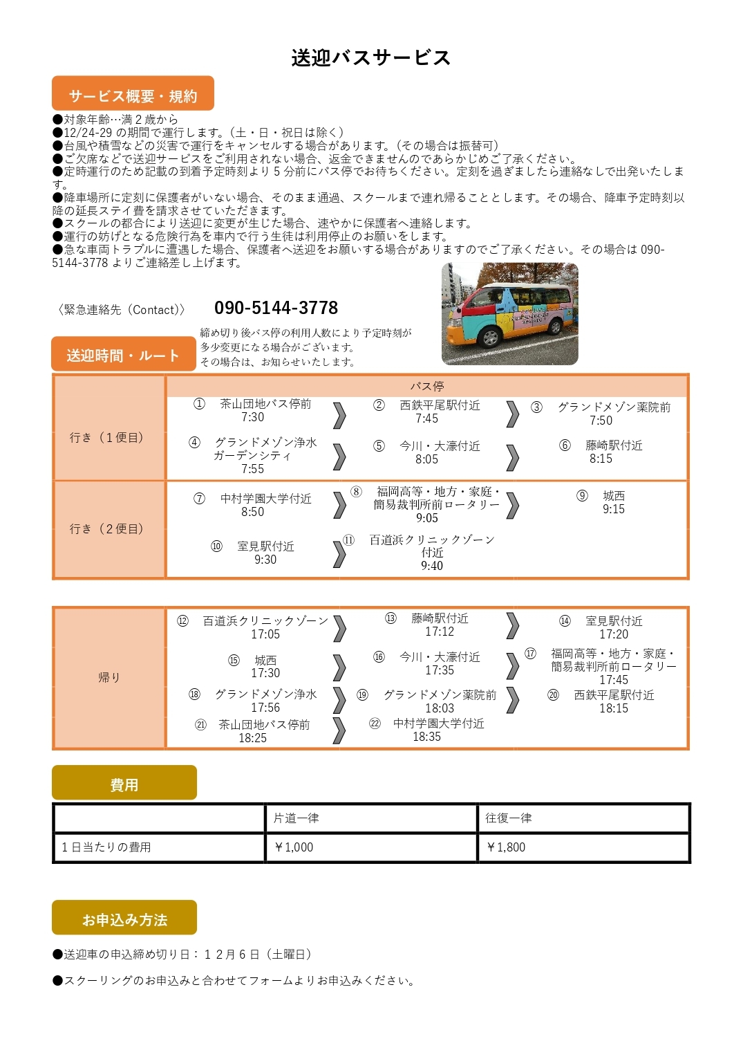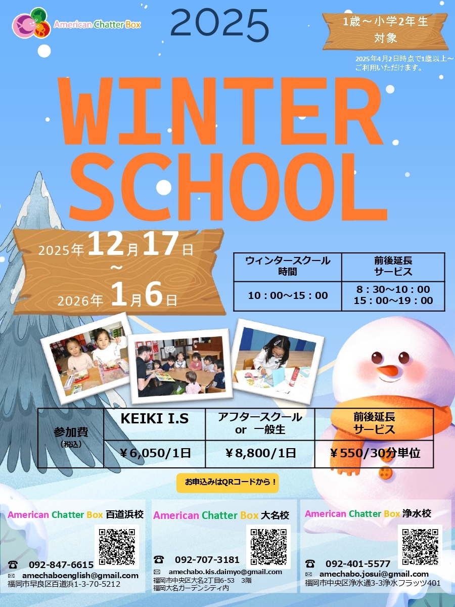 ウィンタースクール(百道浜校・大名校・浄水校)開催のご案内です。