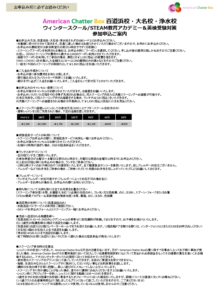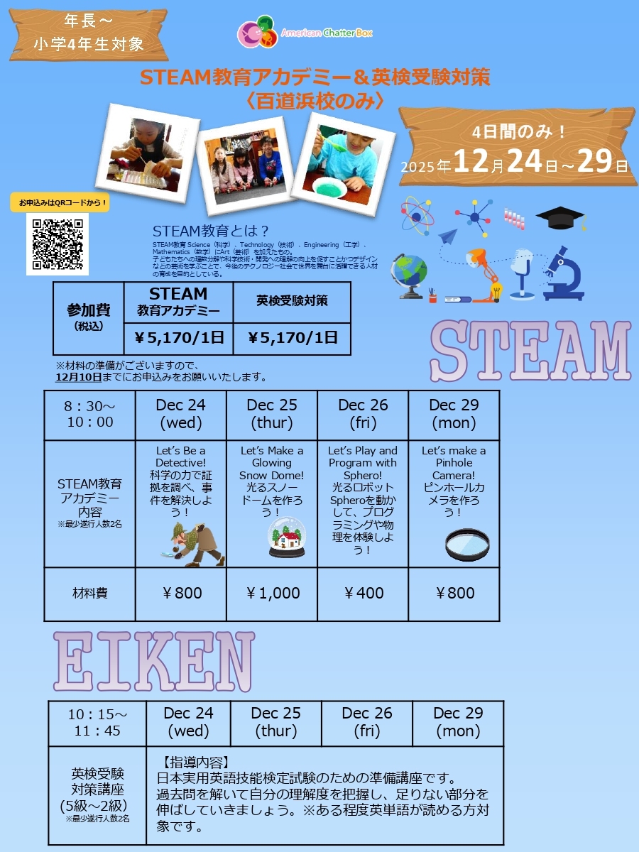 〈百道浜校サマースクール、STEAM教育アカデミー&英検受験対策のお申込みはこちらから〉