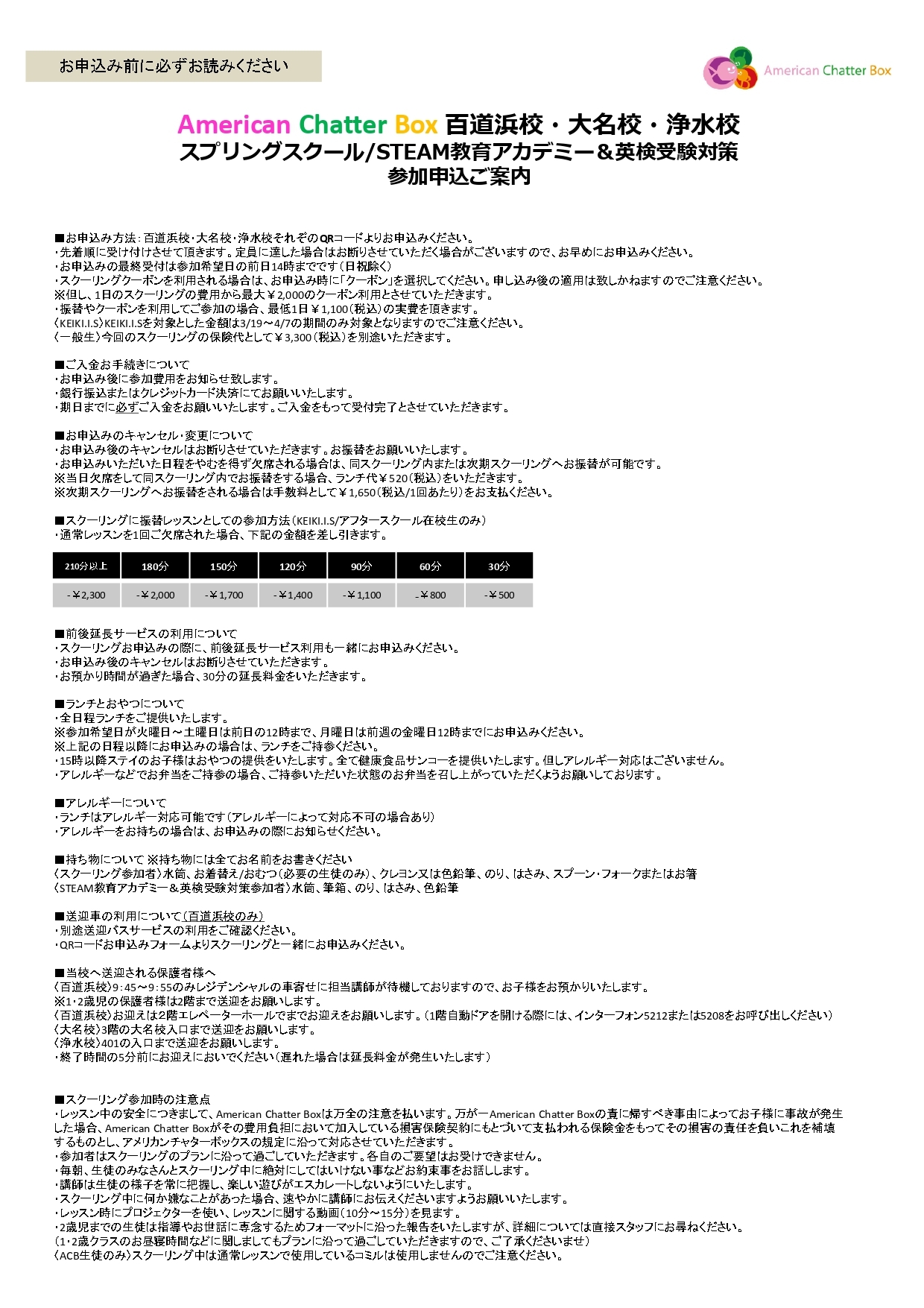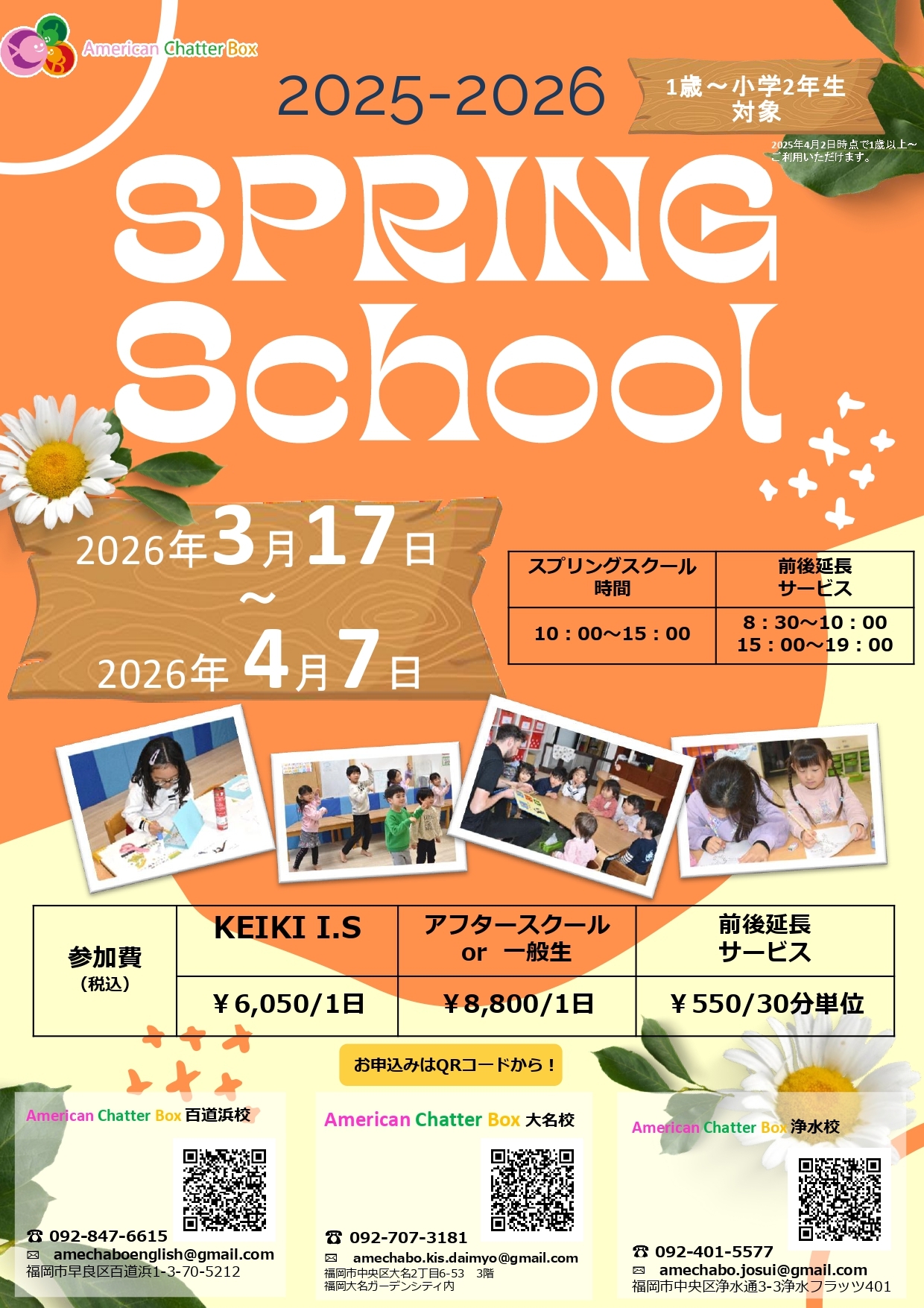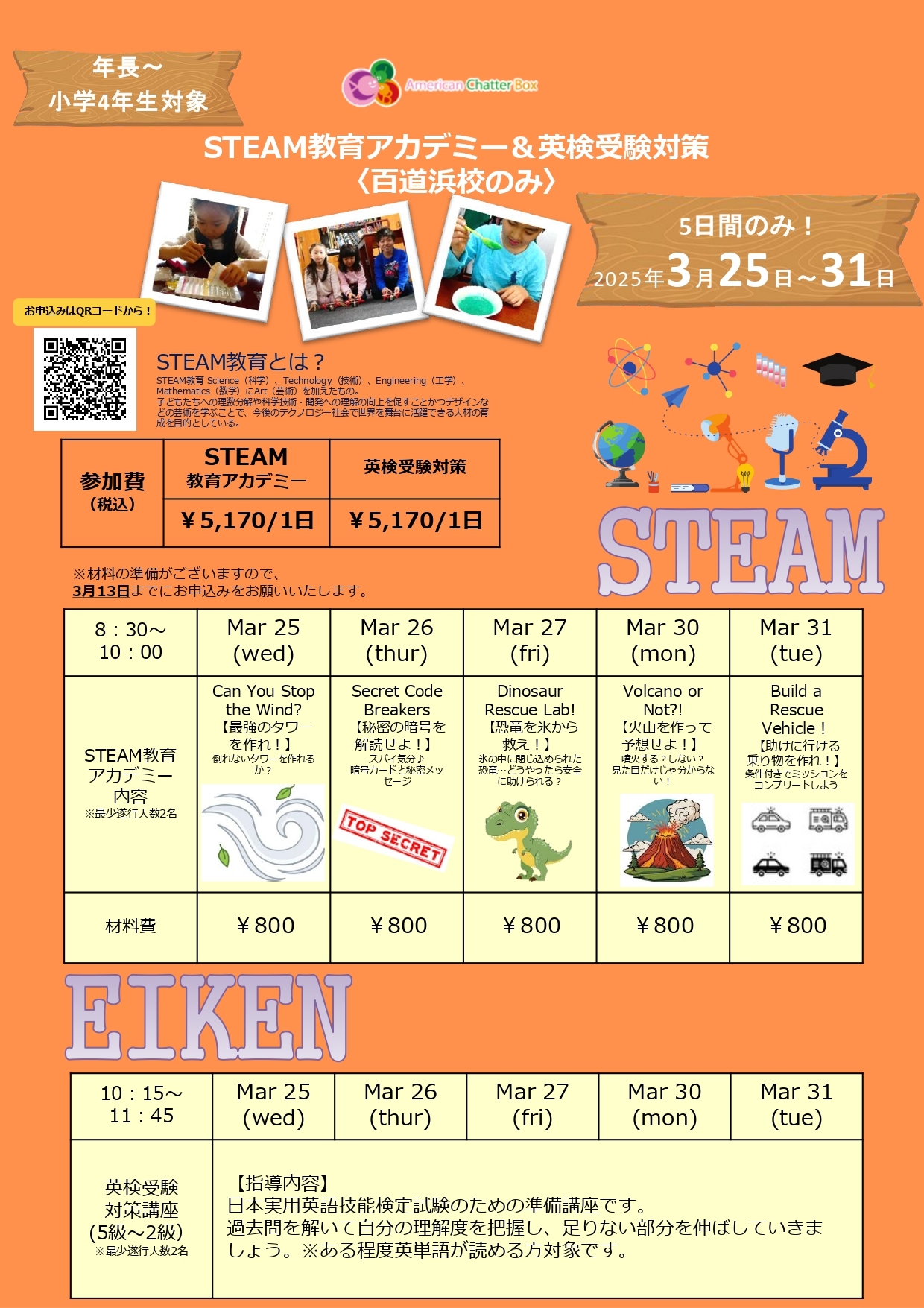 〈百道浜校スプリングスクール、STEAM教育アカデミー&英検受験対策のお申込みはこちらから〉